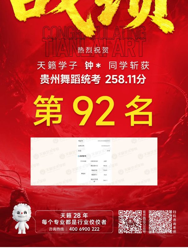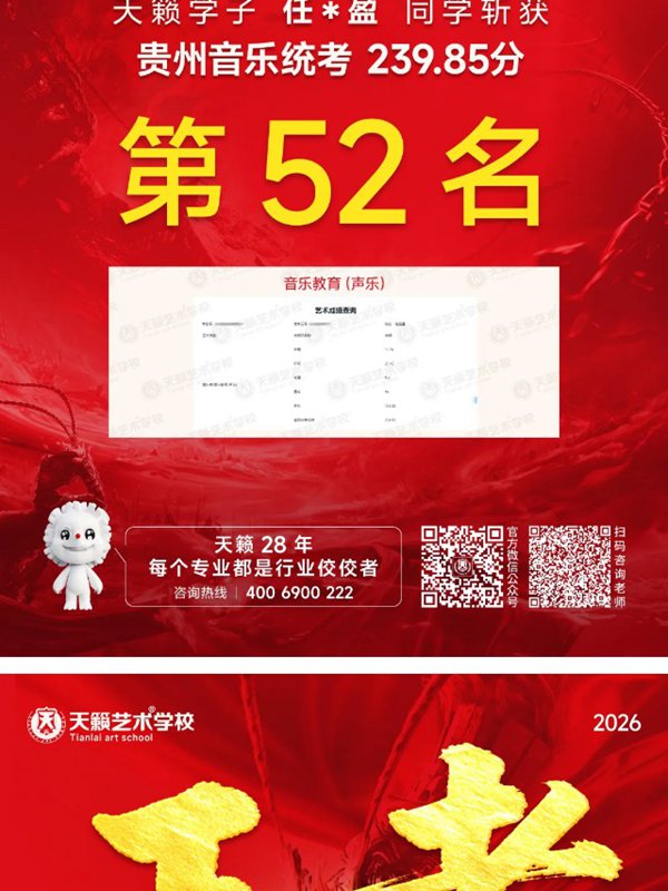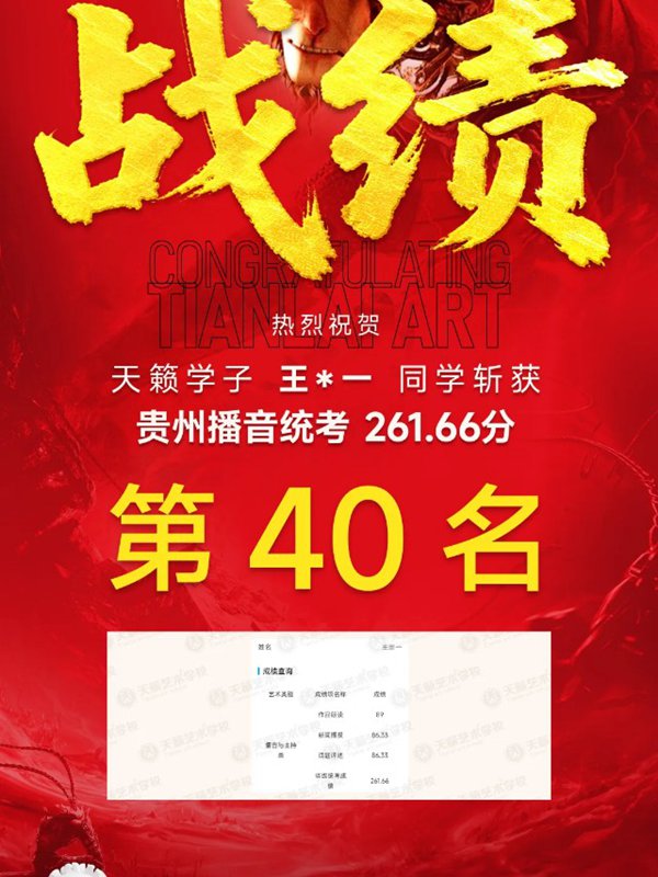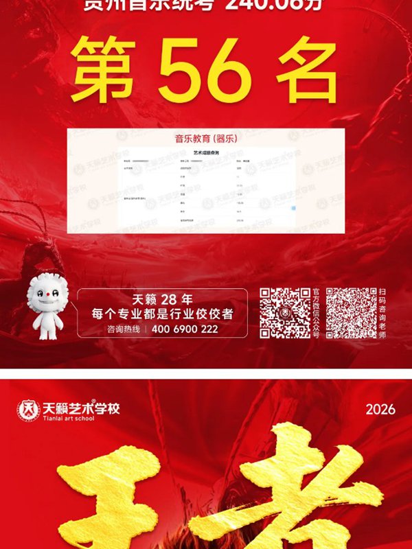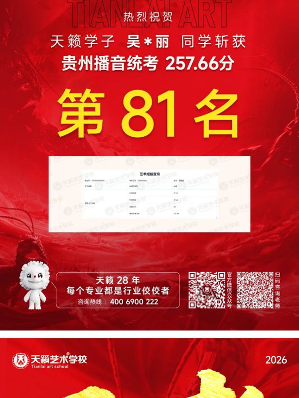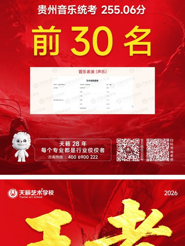 贵州音舞影视传媒专业统考捷报 | 祝贺天籁艺术学校2026届斩获贵州统考前30名 全省第一高分段 7人 战绩闪耀!