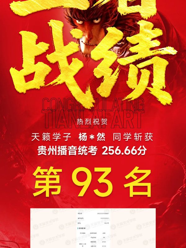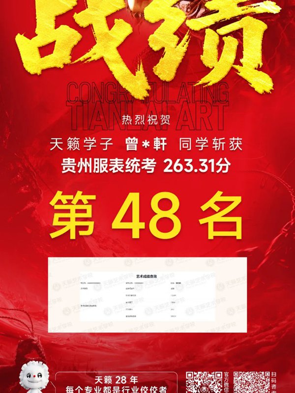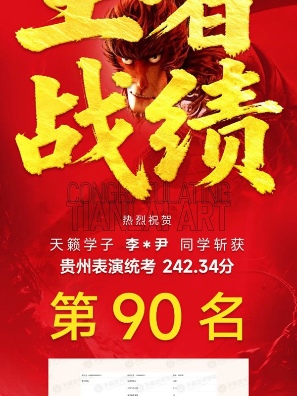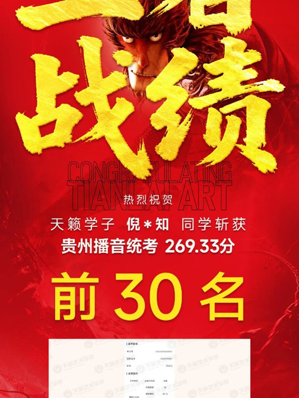 2026天籁学子孔*曦220.17分斩获贵州导演统考 全省前30名